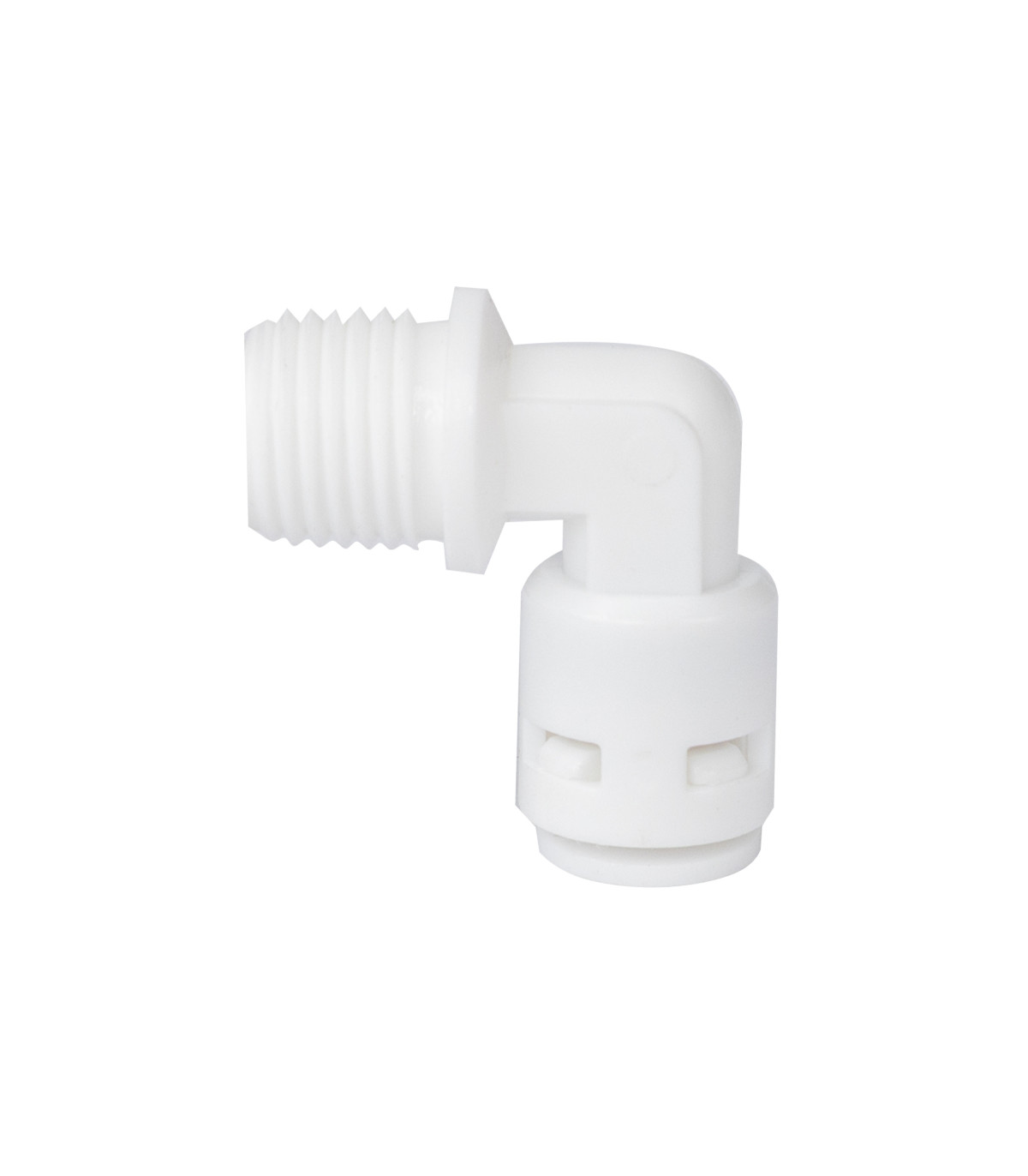 Wysokiej jakości element instalacyjny przeznaczony dla systemów odwróconej osmozy oraz innych układów uzdatniania wody. Jest to kolanko przyłączeniowe z gwintem ¼” i szybkozłączką pod wężyk 1/4”, zaprojektowana w celu uproszczenia i uszczelnienia podłączenia przewodów w systemie filtracji.