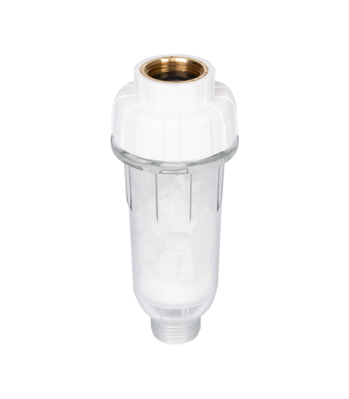 FHPRA zwany też filtrem pralkowym, zaprojektowany do ochrony urządzeń domowych (pralki, zmywarki itp.) przed osadzaniem się kamienia i poprawą efektywności detergentu. Wnętrze filtra zawiera kryształy polifosforanu, które reagują z jonami wapnia i magnezu — przekształcając je w drobne, mikrokrystaliczne związki (fosforan wapnia), które nie osadzają się jako twardy kamień na elementach urządzeń. Filtr wyposażono w pre- i post-filtry, które zapobiegają wydostawaniu się kryształów polifosforanu do instalacji wodnej i wnętrza urządzeń. Filtr należy montować między zaworem doprowadzającym wodę a urządzeniem (np. pralka lub zmywarka). Posiada złącza GW ¾” i GZ ¾”, więc nie trzeba stosować dodatkowych akcesoriów instalacyjnych. Nie należy stosować do wody pitnej! Związki polifosforanowe nie są przeznaczone do usuwania chemikaliów, bakterii czy poprawy smaku wody! Filtr można uzupełniać złożem, które można dokupić w naszym sklepie.