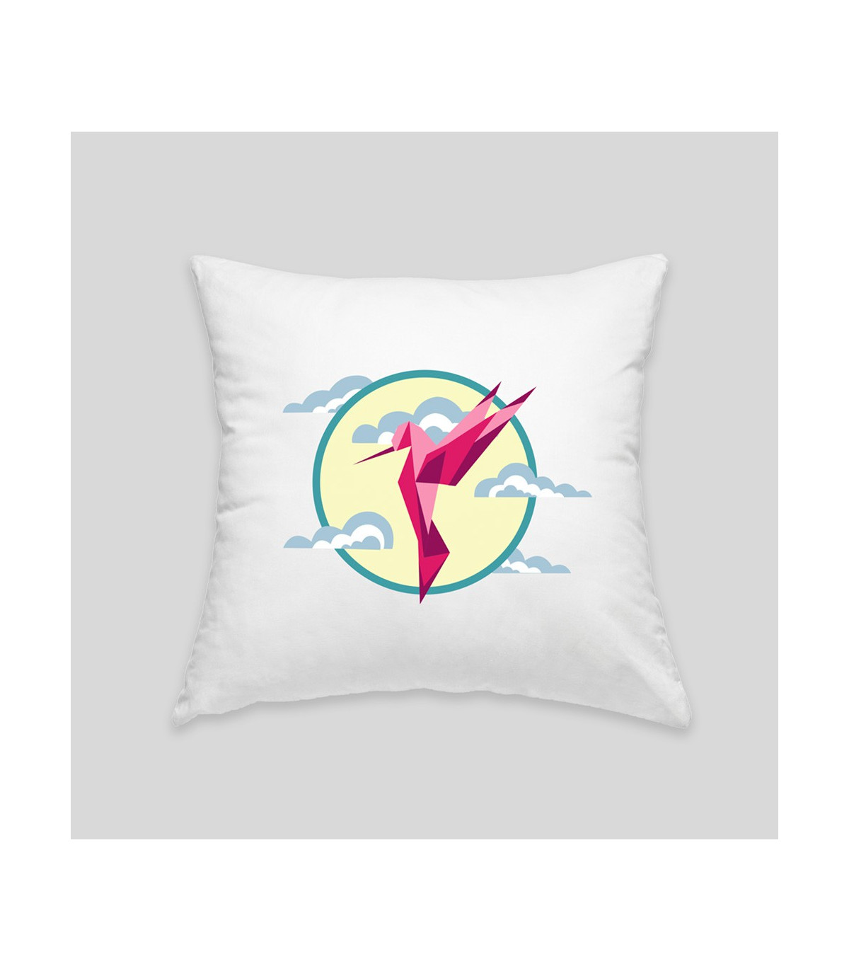 The hummingbird cushion will add a graphic and colorful touch to your sofa, armchair or bed. Create a modern and zen atmosphere that inspires relaxation. Cover 100% cotton, machine washable at 60° / Filling 100% hypoallergenic polyester.